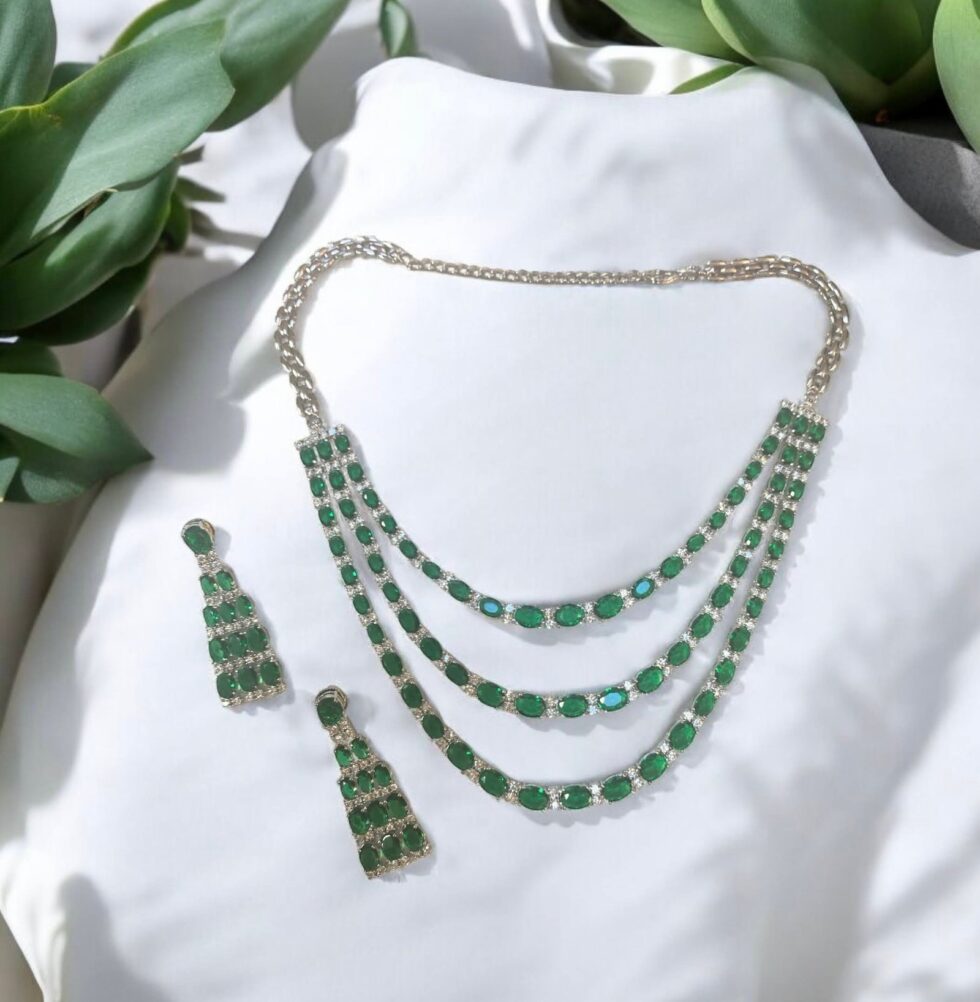 CZ and Emerald Multi layered Necklace Set