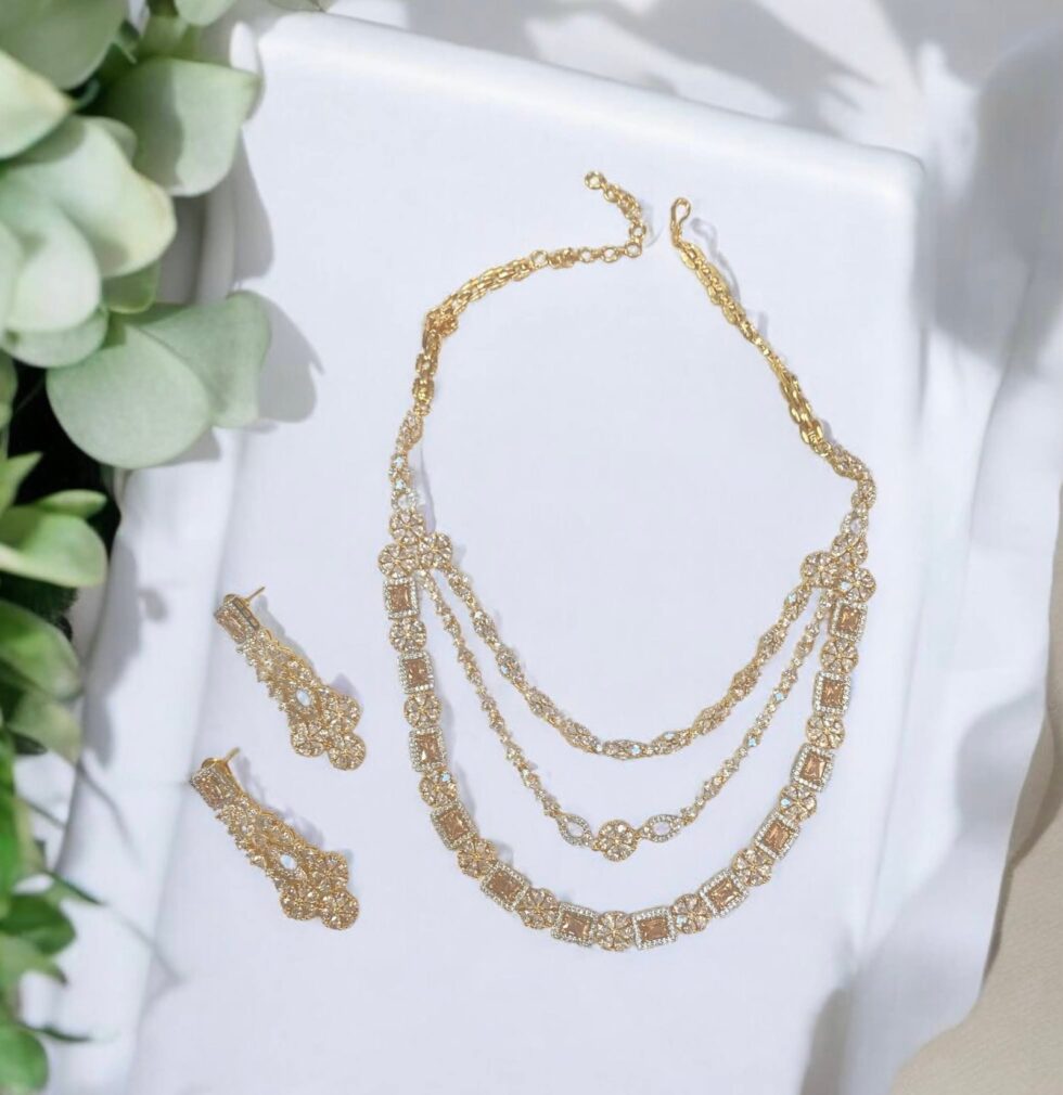 CZ Sparkling Multi Layered Necklace Set